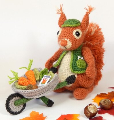 Pattern also includes instructions for Cyril's wheelbarrow, carrots and leaves.
