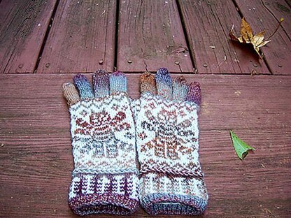 November 5: found & corrected a few errors in the PDF. Please refresh the file in your libraries. The PDF has full charts and written instructions for two different sizes. Instructions are given for knitting on circular needles (magic loop method). You can use fingering- or sport-weight yarns for the gloves. Washable sock yarn would be the best choice, I think.