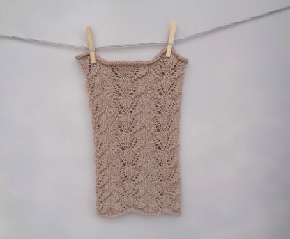 This light and airy cowl with a pretty leaf lace pattern is knit with two strands of laceweight alpaca.