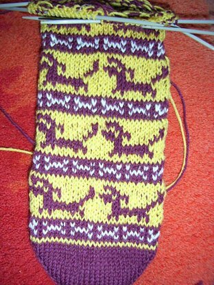 This chart pattern can be used to knit a 60 stitches sock but certainly you can use it for anything else, too. As I have finished the socks today I could now add a German and English knitting description for socks in sizes 38/39.
