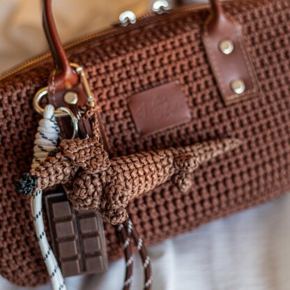 The Dachshund Keychain crochet pattern includes: a step-by-step video tutorial (1 hour 40 minutes long) and a PDF file with the list of materials and row-by-row calculations. Skill level – beginner. Crochet time – about 1 day.