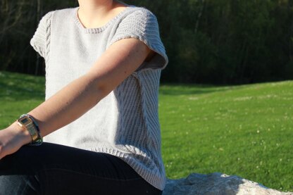 It is knitted seamlessly from the top down, starting at the shoulders, with some short rows and increases for the neckline. Back and front are worked flat up to the armholes and joined to continue the body in the round. The sleeves are picked up at the armholes and worked in the round.