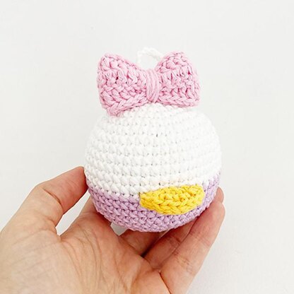 The Daisy christmas ornament has a diameter of 8 cm (the ball part) when using the materials mentioned above. If you are using yarn with a different gauge the toy’s measurements will change. Feel free to use any yarn you want, the toy itself won’t change, just the size. Make sure you sew tightly every part of the toy.
