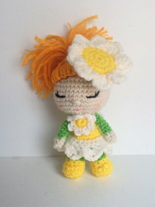 Daisy is ~ 6” tall (when crochet with 2.75 hook and worsted yarn)