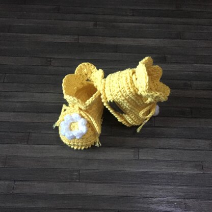 DAISY CROCHET BABY BOOTIES PDF - Adorable lacey baby booties in 4 sizes Prem to 1 Year- Size altered by changing hook size. Made in the round bottom up so no sewing.