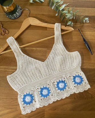 Daisy loop crop top adult crochet pattern by CraftedbyCat