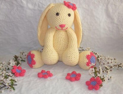 Daisy the Spring Bunny crochet pattern is a 7 page PDF file. She measures approx. 15 inches from head to foot when laying flat. She was made to be the perfect Easter gift or for anyone who loves Spring and flowers.