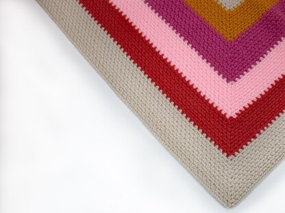 A advance beginner blanket with a cluster crochet stitch consisting of double crochet, chain one and single crochet. Works up quick and has a dense texture with lots of drape. Features Red Heart Super Saver and in modern boho pinks!
