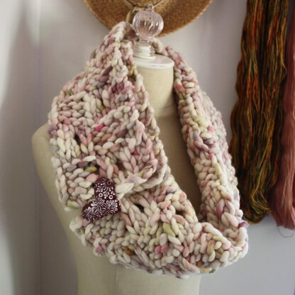 Damspiel Cowl / Neckwarmer: super oversized, rustic, and beautiful worked in hand dyed/painted super bulky wool and wool blends.
