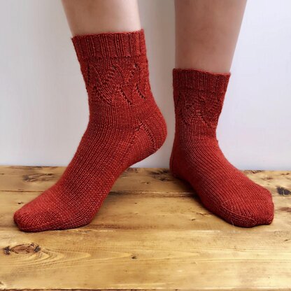 The Dancing Flame socks are a quick fire knit, sure to keep your feet toasty!