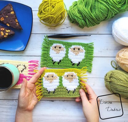 This mug rug design is definitely cute, like adorable little sheep it is based on. These little sheep are perfect for home decor or gifting and add a nice bit of levity to your home with the cute little faces on the sheep. This pattern is perfect for your fiber loving friends or for your friends who spill their coffee daily.