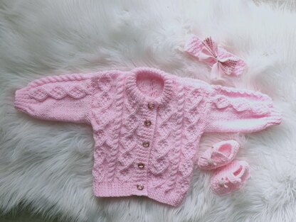 Fantastic DK knitting pattern, "Danielle" will suit boys or girls. Beautiful detail and the testers said they all loved doing this one. Customer feedback has been the same. Pattern contains instructions for Cardigan, Headband, Booties, Shoes and Hat so great value and comes in 5 sizes.