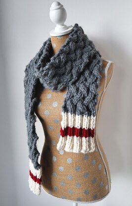 Daniel's Scarf is a knitting pattern beginner to advanced knitters can all enjoy. It produces an epic 7+ foot long scarf that has a classic, preppy yet relaxed vibe. It's perfectly unisex, especially when you work it up in the "sock monkey" inspired color scheme you see in the sample with grey, white and crimson red.