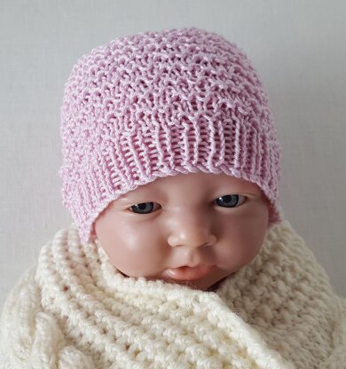 This 4ply Beanie has a 1x1 rib brim then is worked in an easy textured stitch. This design will suit either a baby girl or boy and the pattern includes three prem sizes and a newborn size.