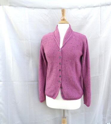Worked in reverse stockinette with a slipped edging, with cute tiny buttons and a shawl collar pulling it all together.