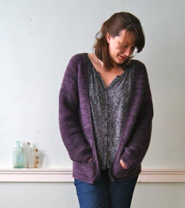 Dawning is a wonderfully simple cardigan with no purling needed:) It is knit flat from the top down with worked in pockets in lovely, cozy garter stitch.