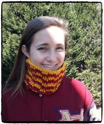 Stay warm and stylish during the cold weather with this quick to work up cowl. It matches perfectly with my Dawn's Hurdles Ear Warmer. Whip up a set of these as a gift for a friend or teacher for the holiday season. Or stitch them up in your favorite school colors to show your team spirit!