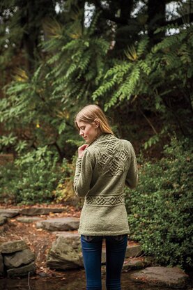Featuring a cabled medallion on the upper back and cabled bands, edgings and waist, the Dealla Cardigan is a rich and luxurious knit. Make it in a jeweled color for an elegant look, or a bright color for an unexpected twist. Any way you make it, the Dealla Cardigan will be the pièce de résistance of your wardrobe.