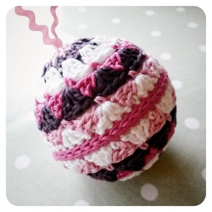 Requirements: 4mm crochet hook, 4 coloured DK yarns, darning needle, 80mm polystyrene ball, ric rac braid (optional), chocolate