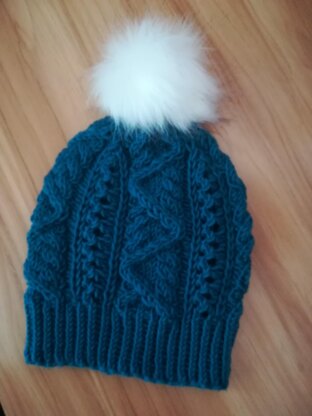 Sts to know: k, p, k2tog, ssk, 4 stitches cables