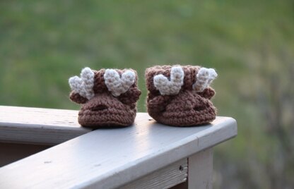 This listing is an original pattern written by myself (Rachel Wisneski, HookingCuteCreations) in English using US Crochet Terminology to crochet your own deer baby booties.