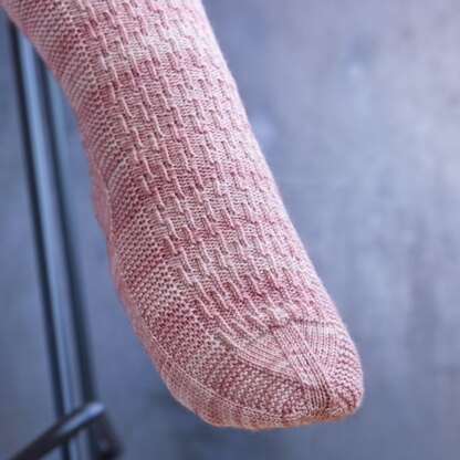 The Deft socks feature a simple twisted stitch pattern complemented by swathes of garter stitch, which balances enough pattern with simple stitches for a relaxing knit. Inspired by the Deft Mitt pattern from my book, Neat Knitting Techniques.