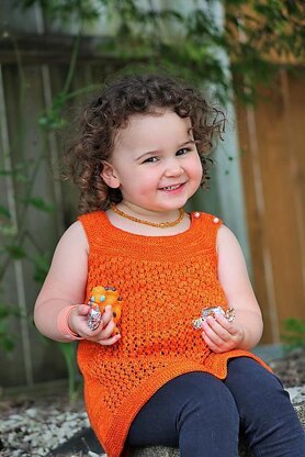 Delicately beautiful and charming Deinte features an easy to knit lace.A completely seamless, top-down knit perfect for layering in any season. This versatile knit has a length that is easily adjusted, allowing you to knit it as a dress that can grow with your girl into a tunic top.