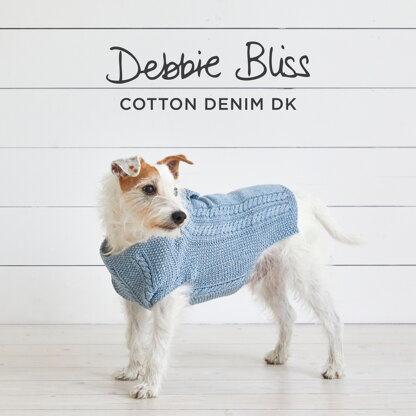 Download the PDF pattern for Denim Coat - Dog jumper Knitting Pattern For Pets in Debbie Bliss Cotton Denim DK by Debbie Bliss & start knitting today!