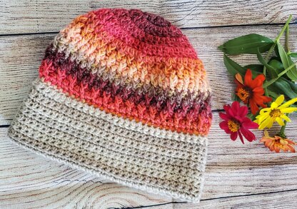 This double-layered brim will keep your ears warm when it’s cold. This hat is worked in two pieces, and seamed together. You can easily modify the pattern to make smaller or larger sizes. The pattern is written for an adult size, 18” circumference. You can work the top and bottom with the same yarn or two different yarns. Check out the matching Alpine Scarf to pair with this hat!