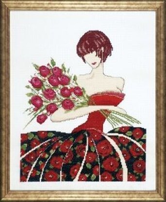 13" x 16" (33cm x 40.5cm). Kit contains chart and instructions, needle, beads, 14 count white Aida fabric, metallic threads and presorted stranded cotton threads on a loaded thread organiser.Designed by Marilyn Robertson
