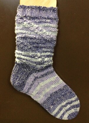 This is a knitting pattern for an ankle length sock. It is knitted in the round with DK yarn. The length of the foot can be altered to fit.