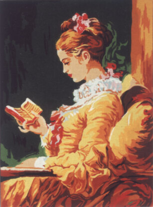 Intermediate Lady With The Volume Of Verses Tapestry kit by Diamant. Kit contents: Screen printed 10ct Duo tapestry canvas with Anchor and DMC thread suggestions