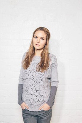 This intricate lace sweater is formed of square panels worked in the round from the centre out to form the front and back panels. Approx. 6 inch allowance.