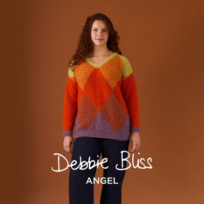 This showstopper of a sweater is bang on trend, and a crocheter's dream! Worked in shades of Debbie Bliss Angel held double stranded, you create the most amazing colour combinations! The diamond pattern is worked using a chart, and can choose from 16 gorgeous colours in Debbie Bliss Angel, a super soft blend of mohair and silk.