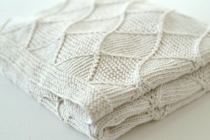 This diamond cable and garter stitch **baby blanket **is perfect for a baby boy or baby girl as it looks special in any colour....cream and neutral colours, fun brights, soft pretty colours or boyish blues, greens and browns. Knit this blanket in any DK yarn. You will need 1300m (1420 yds) to knit the baby blanket.