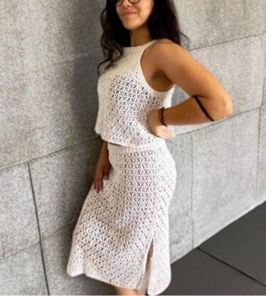 SUMMER SET is a charming two-piece crochet outfit. Quick to make! One row gives approx. 2 cm / 0.8" of fabric — perfect for a fast and easy project.