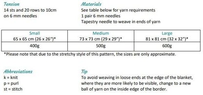 The ribbing in this pattern gives the blanket a texture so springy and soft you’ll want to snuggle down with it yourself! It’s available in three sizes, making it ideal for a car seat, buggy or Moses basket, and the unisex design means it's also a good baby shower gift. It uses just basic knit and purl stitches, so it’s an ideal beginner project. I used Paintbox Simply Chunky, an easy care, acrylic yarn, but any chunky yarn should be suitable – just check the yardage.