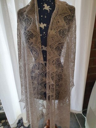 Charted knitting pattern for a lovely evening Wrap. The instructions provided in this pattern will enable you to make this beautiful light, lacey, and delicate wrap that features a combination of shells and diamonds in the Shetland Lace tradition. It can be knitted in a variety of different wool weights from cobweb up to 3 ply or light fingering, however, the heavier the yarn is, the larger the finished article will be. The pattern is a charted pattern only, with no written row by row instructions, so it is not for the faint-hearted. Only buy this pattern if you can knit from a chart.