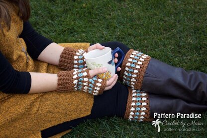 The rows of color combined with the stitch remind me of little gems. I love how they interlock with each other resembling a piece of jewelry. The Fingerless Gloves & Boot Cuffs are the perfect addition to your winter wardrobe!