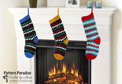 Hang your stockings by the chimney with care! St. Nicholas will be sure to fill these pretty stockings. The stitch pattern combined with jewel toned colors remind me of gems, hence the name. This is an easy stocking to work up and I think you’ll want to make many!