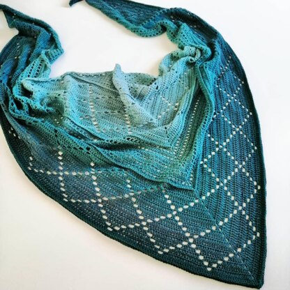 The Diamonds of the Night shawl is crocheted with the filet crochet technique. This is a technique with only chains and double crochet stitches.
