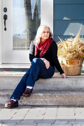 I love crescent-shaped scarves. They're so versatile and easy to wear. I spend most of the winter with one wrapped and tied around my neck, and even carry them in the summer, ready for over-airconditioned rooms. This scarf is named after Dice Bay, located on Lake Clark, where you’ll find Port Alsworth, Alaska, population 159, give or take a few. A scarf like Dice Bay would be a good idea in Port Alsworth, or anywhere else for that matter—it’s pretty AND practical.