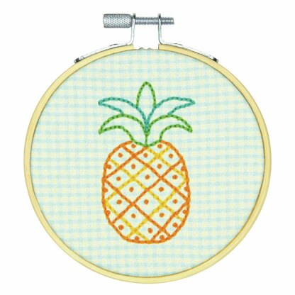 Dimensions Pineapple Pattern Crewel Printed Embroidery Kit with Hoop - 4in (10cm)