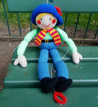 Dingle Dangle Scarecrow is a lovable, dangly toy puppet. It is knitted in oddments of DK yarn, and therefore makes an ideal 'stash buster' project. As it's a toy, the tension is not crucial to the project, but the same tension will result in a toy which is about 40 - 42 cm in length.