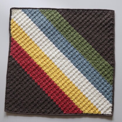 This is a corner-to-corner tapestry project. The design is reminiscent of the disability pride flag, which represents different disabilities through multiple colours. This can be used a wall hanging.