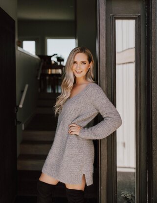 Equal parts casual and graceful, Distant Fog is an infinitely versatile piece that doesn’t just enhance an outfit but becomes the outfit. This simple design paired with a relaxed fit makes Distant Fog a staple piece that can be worn on any occasion without feeling overdressed. Soft elements like the deep, curving neckline and the delicate split hem help bring a lightness to this boxy dress. Changing the length is a simple way to breathe new life into a design without needing to modify any pattern math, and this humble sweater has the potential to be worn as a hip-length sweater or a dress that lands at the thigh for a comfortable, approachable outfit that suits your personal taste. Try defining your waistline with a belt for a more tailored fit.