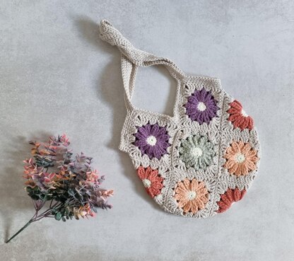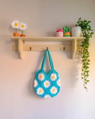 The Ditsy Daisy Market Bag is the perfect summer accessory, a pop of colour and beautiful florals that never go out of style. It is made up of 13 Ditsy Daisy Granny Squares stitched together before crocheting the handles.