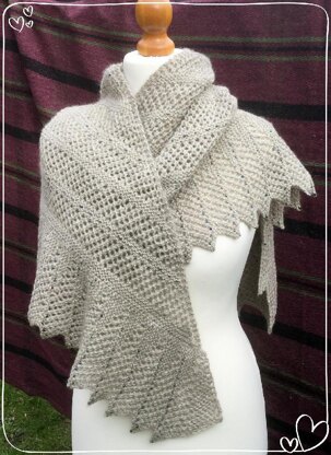 This elegant shawl is knitted in double-knit weight British Blue face Leicester wool, so its warm but not tool bulky. The natural colour of the wool is interspersed with over 800 4mm seed beads giving it a fashionable twist without detracting from the simple elegance of the design and yarn. This one size fits all written pattern set out so you can tick off rows on completion. A gauge is given but exact sizing is not critical to the finished garment. Knitted in one piece on 4.5mm needles. Overall finished length along longest edge 1560mm, depth to point 880mm.