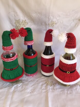 DK straight needles knitting pattern Santa and Elf Christmas wine bottle hat jacket & dress