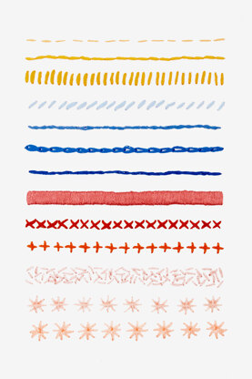 Using all six strands, learn and practise 13 different beginner stitches including running stitch, back stitch and straight stitch in a rainbow of colours. There are two more samplers in the collection, so you can build your skills and repertoire with easy and intermediate stitches.